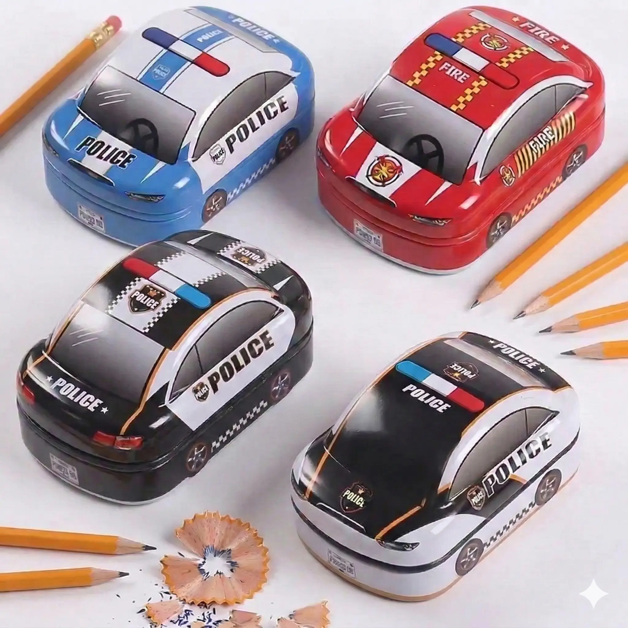 Add excitement to everyday school supplies with this Police Car Shape Metal Fancy Pencil Sharpener for Kids. Designed with a cute and colorful police car theme, this sharpener makes sharpening pencils more fun for children. It is equipped with a high-quality metal blade that ensures smooth and precise sharpening without damaging the pencil lead.